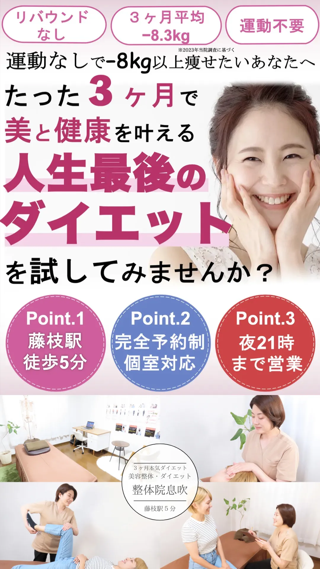 当院の人生最後のダイエットコースを「ぜひやってみたい!」思っていただいた方のみのご案内となりますので、お気軽にお越しください。
